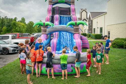 There will be water slides, a bounce house, lawn games, popsicles and a dunk tank where kids can try to dunk their leaders! This will take place during both service hours (9:15 & 11:15) where kids will be led outside for an hour of FUN during the service.